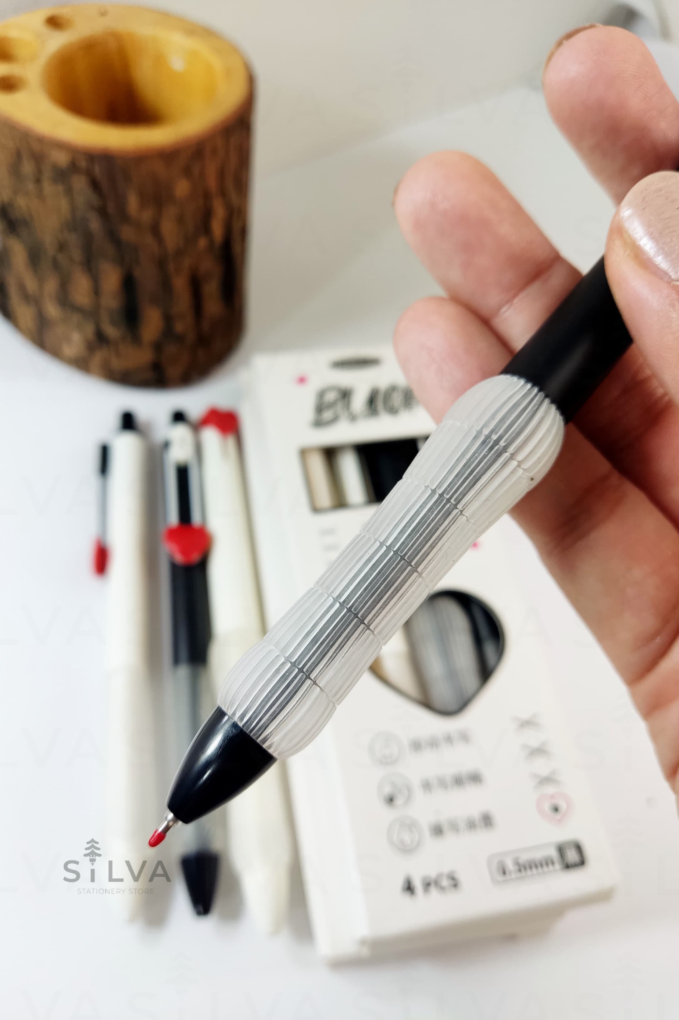 نوک ۰.۵ میلیمتری این خودکار، نوشتاری روان، یکنواخت و دقیق ایجاد میکند و جوهر مشکی آن بدون قطعی یا پسدادن، تجربهای لذتبخش از نوشتن را فراهم میسازد. گریپ نرم و خوشدست موکا از خستگی دست در استفاده طولانیمدت جلوگیری میکند.